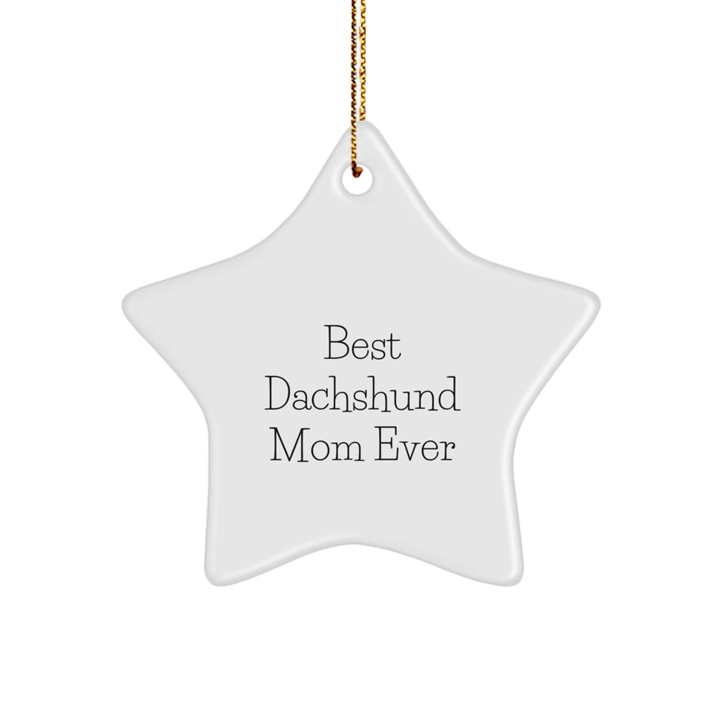 - Add a touch of magic to your holiday decor with this festive gold corded star ornament, featuring a beautiful 'Best Dachshund Mom Ever' quote. Perfect for hanging on your Christmas tree or mantle, it's a thoughtful way to celebrate the joy of the season.