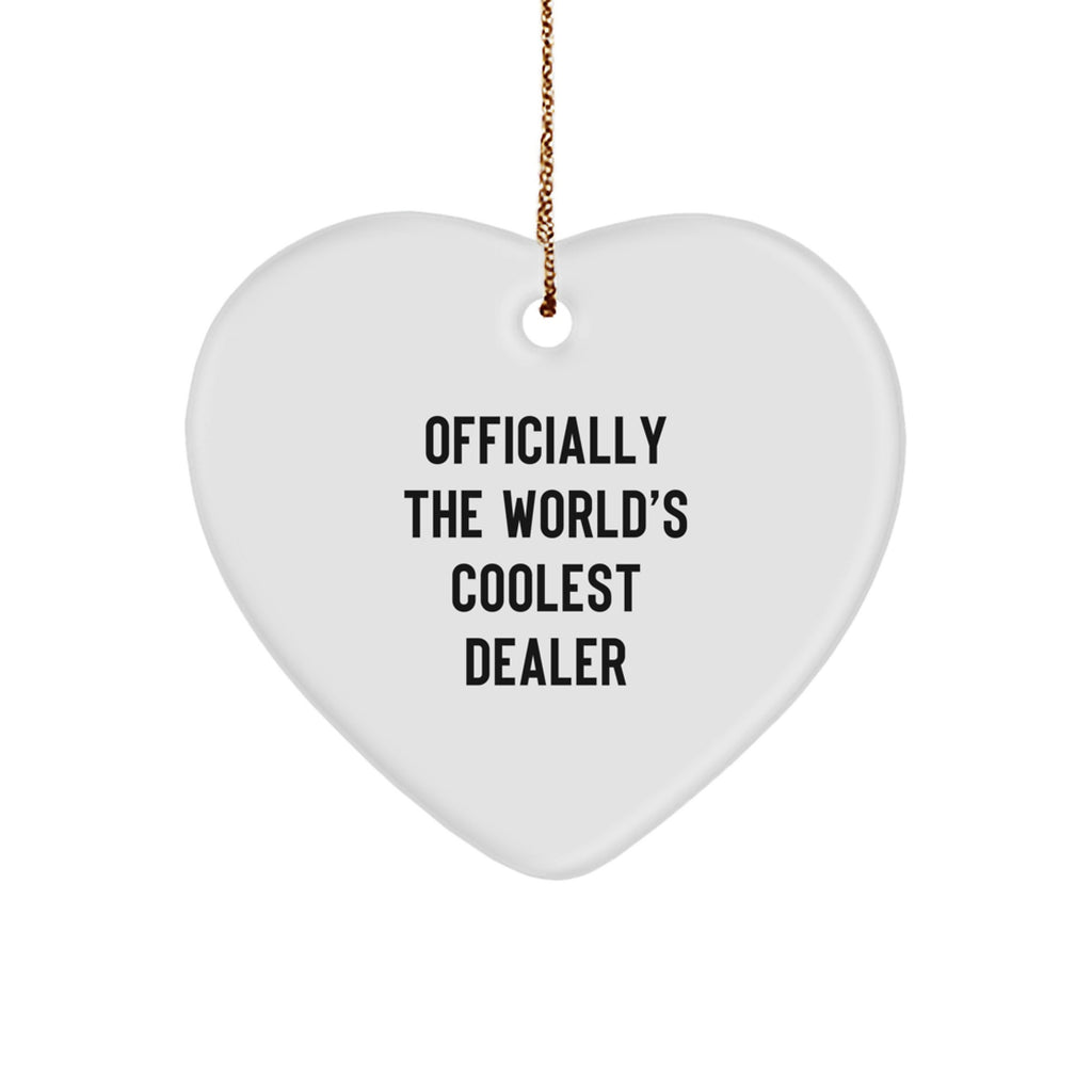 - This Funny Gifts from Men for Dealers - Heart Ornament World's Coolest Dealer is the ideal gift for any Dealer enthusiast. Made from high-quality materials, this ornament is both sturdy and long-lasting, ensuring it will remain a treasured keepsake for years to come.
