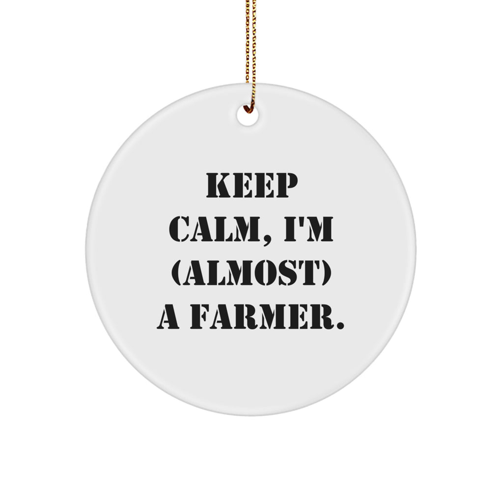Funny Farmer Gifts for Men, 'Keep Calm I'm (almost) A Farmer' Circle Ornament, Christmas Unique Gifts from Friends