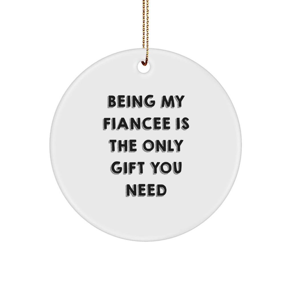 - This funny love gift is a unique and thoughtful way to express your love and appreciation for your Fiancee. The quote 'Being My Fiancee Is The Only Gift You Need' is a cute way to let her know how much she means to you. Made from sturdy MDF with a high-gloss plastic finish, this ornament is lightweight and resistant to breaking, making it a great choice for households with children or pets.