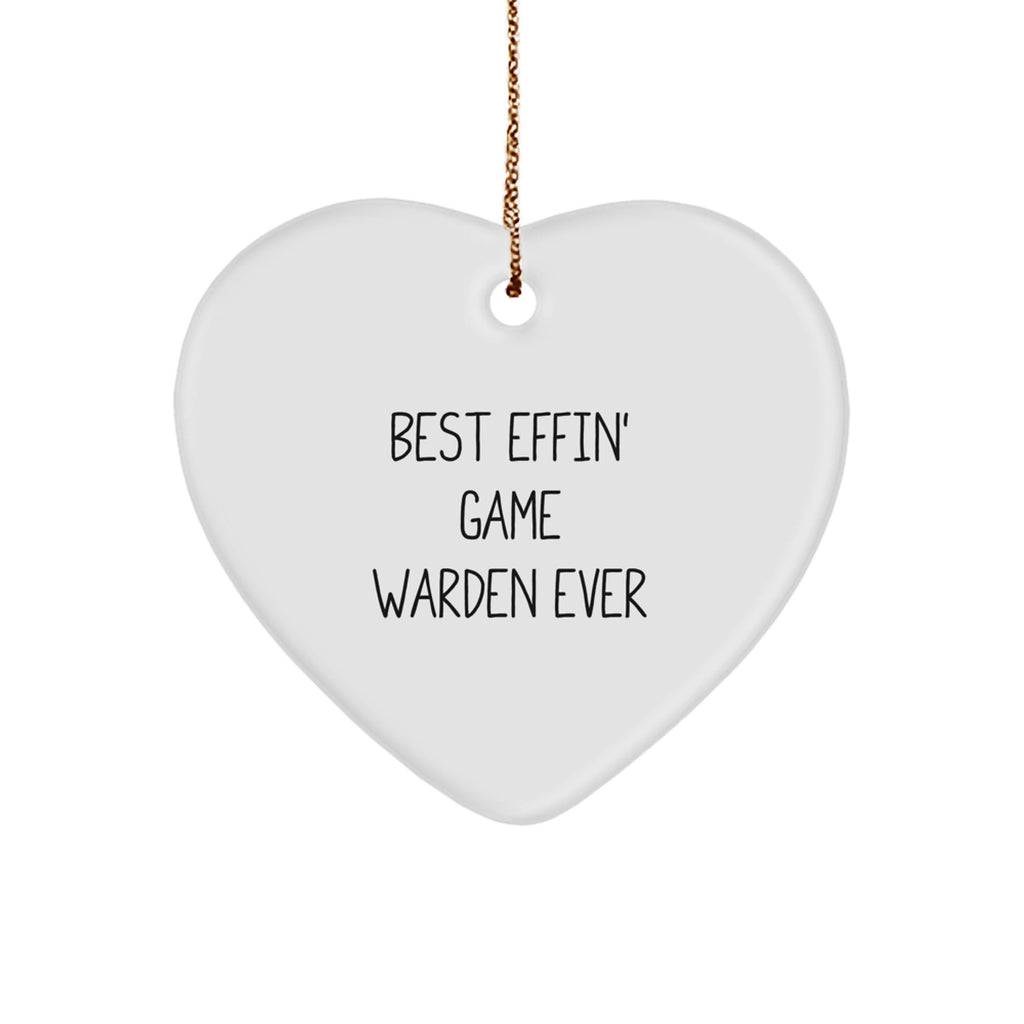 - This funny heart ornament is the ideal gift for any Game Warden who loves the outdoors and is dedicated to wildlife conservation. Made from sturdy MDF with a high-gloss finish, it's a long-lasting and vibrant decoration that's sure to bring a smile to their face. Featuring the quote 'Best Effin' Game Warden Ever', it's a unique and humorous way to show your appreciation for their hard work and dedication.