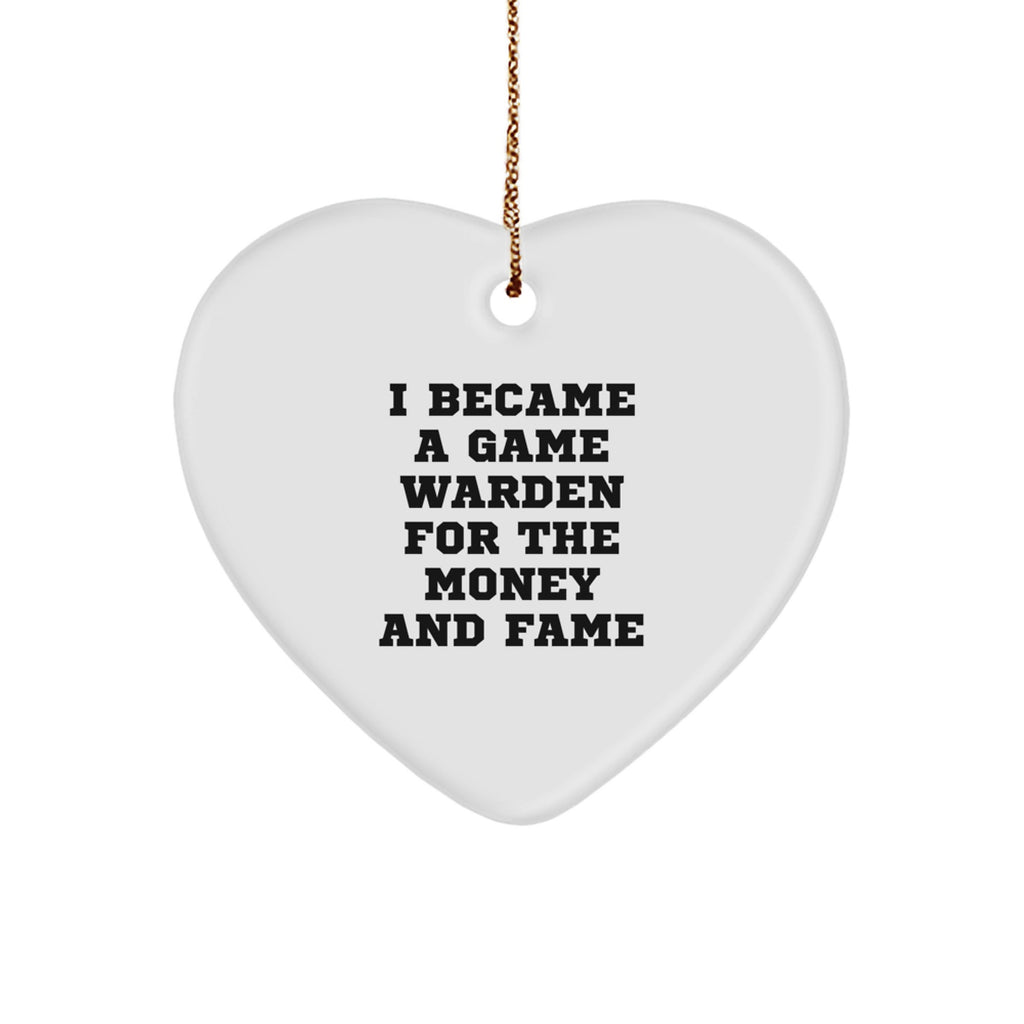 Game Warden Gifts from Friends and Family - Heart Ornament 'I Became A Game Warden For The Money And Fame' - Funny Christmas Unique Gifts for Game Wardens