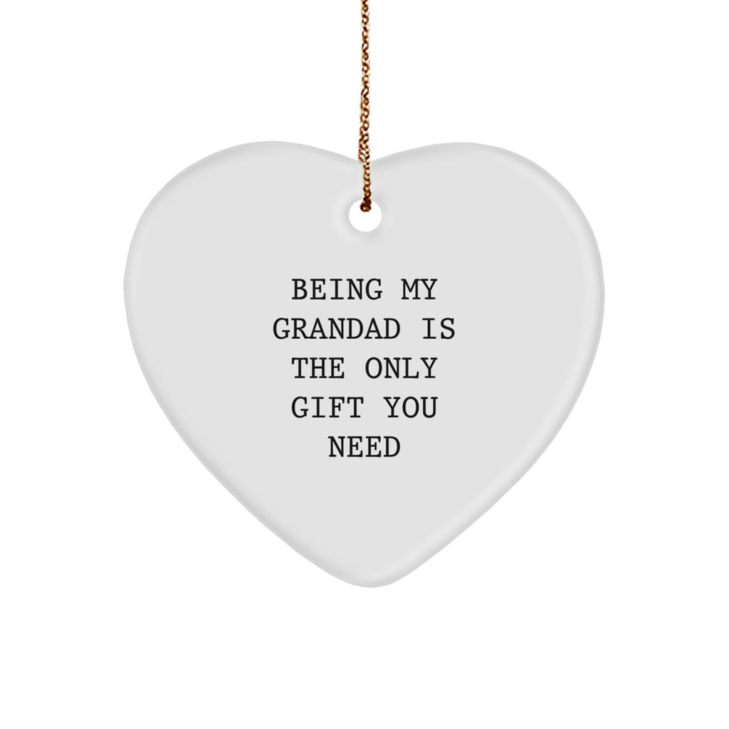 - This Grandad Heart Ornament is a thoughtful gift from family to Grandad, made from sturdy MDF and high-gloss plastic. It's a unique Christmas gift idea for men that will add a touch of elegance to your Grandad's room or office. The funny quote 'Being My Grandad Is The Only Gift You Need' will surely put a smile on their face.