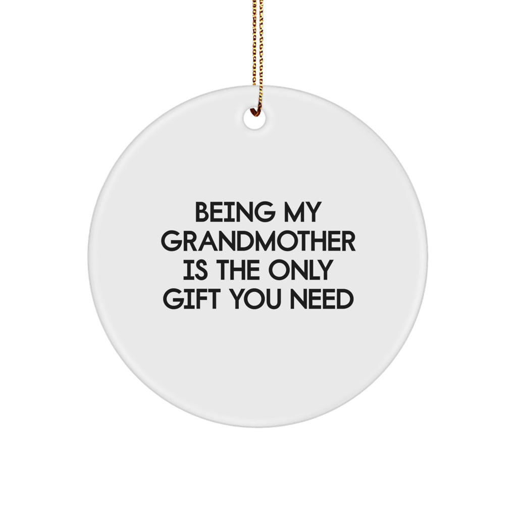 - The 'Being My Grandmother Is The Only Gift You Need' Circle Ornament is a beautifully designed gift that makes a great addition to any home. The vibrant colors and festive design make it a perfect fit for the Christmas season. This gift is perfect for Grandmothers, Mothers, and any woman who loves to be celebrated.