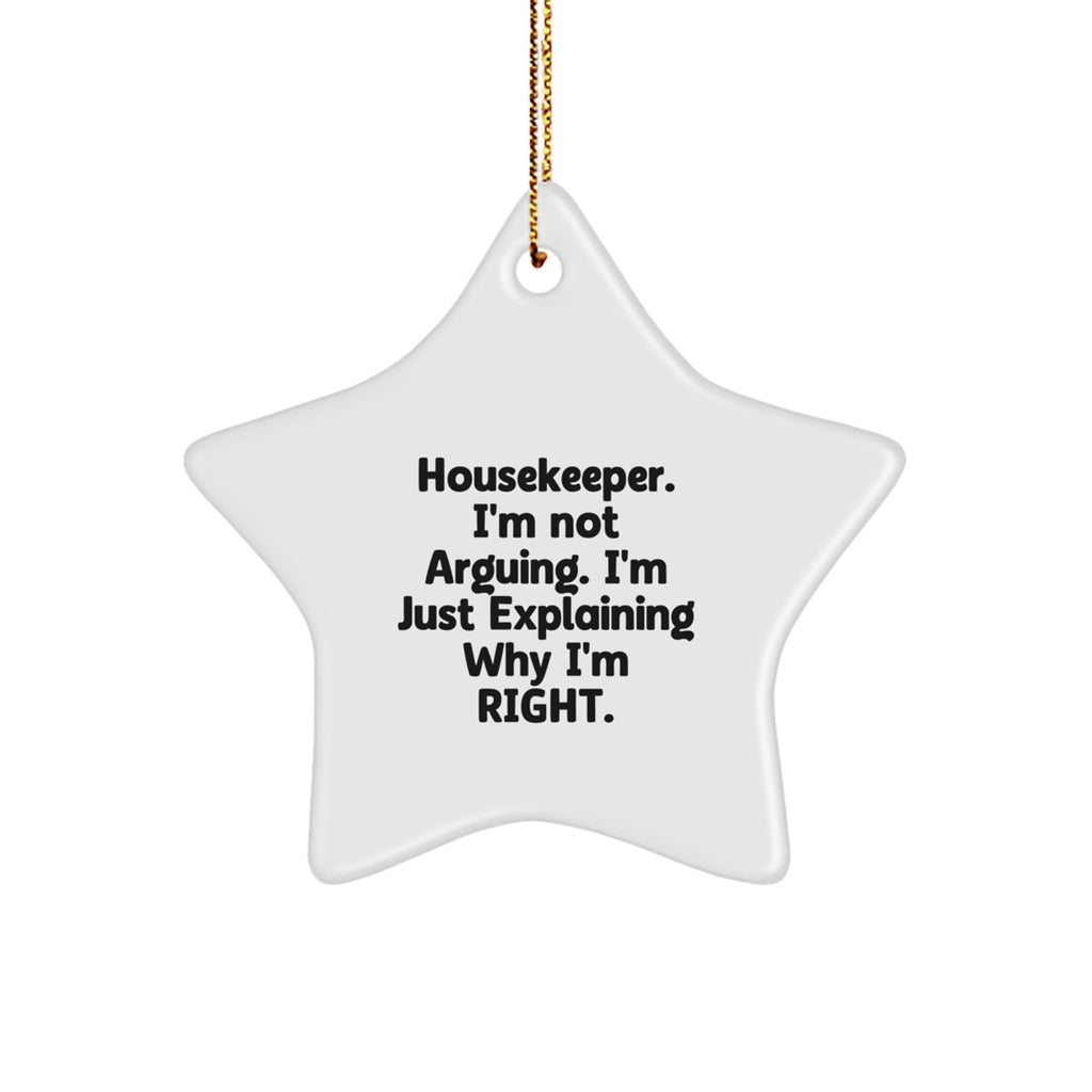 Funny Housekeeper Christmas Unique Gifts from Friends, Housekeeper Star Ornament Decoration, 'I'm Not Arguing. I'm Just Explaining Why I'm Right.', White Star Shaped