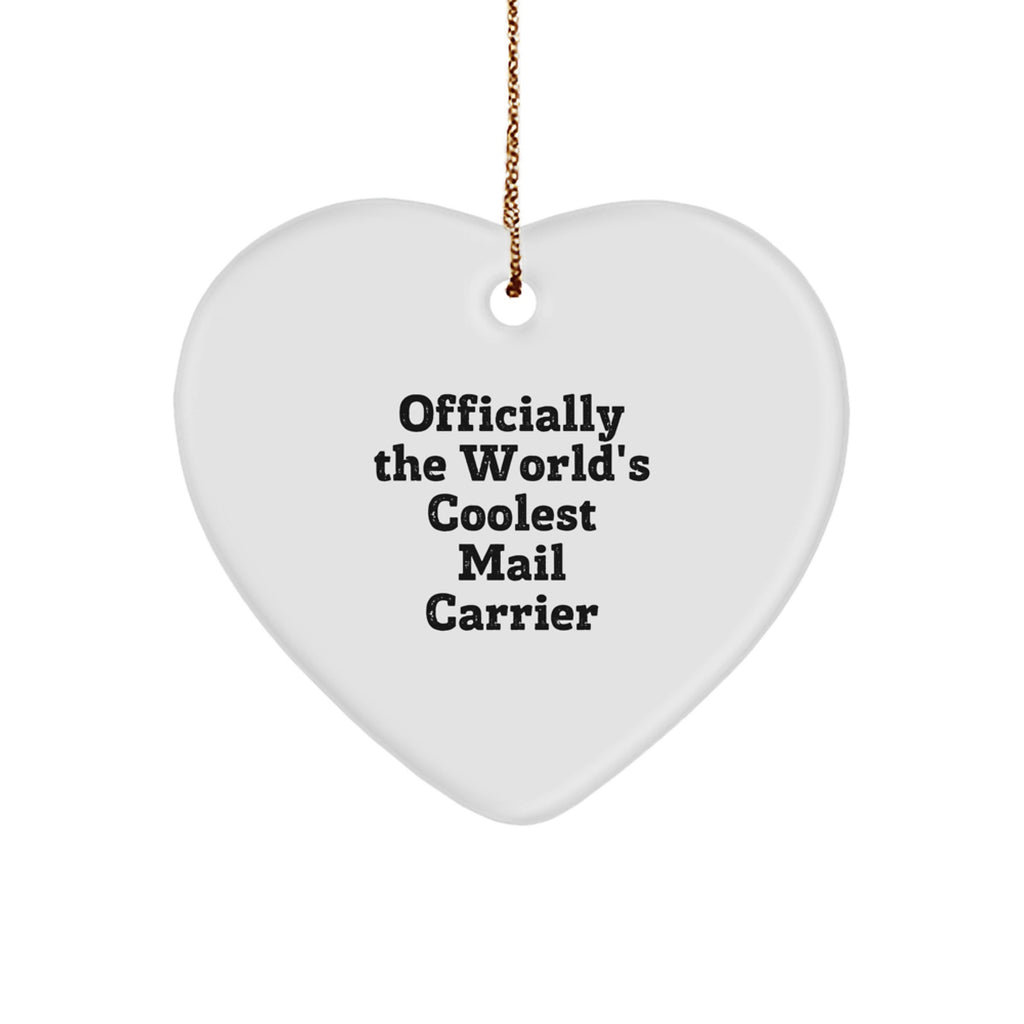 - Give the gift of appreciation with this heart-shaped 'Officially The World's Coolest Mail Carrier' quote ornament. It's a thoughtful way to show your mail carrier how much you value their hard work and dedication. This ornament is a unique and fun way to celebrate the holiday season and bring some joy to your mail carrier's day.
