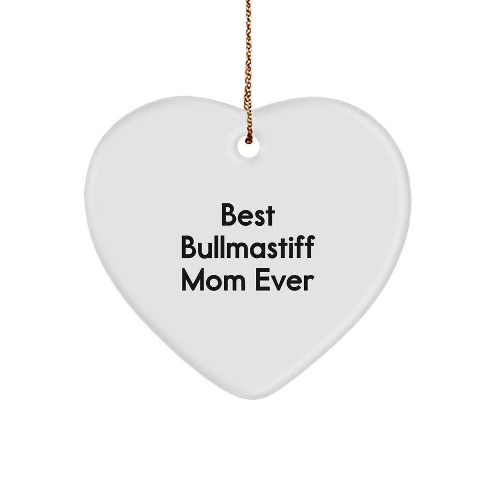 - This heart-shaped ornament is a thoughtful gift for any Bullmastiff Dog mom, and its inspirational quote will surely bring a smile to her face. Made from sturdy MDF with a high-gloss plastic finish, it's lightweight and resistant to breaking, making it a great choice for households with children or pets.