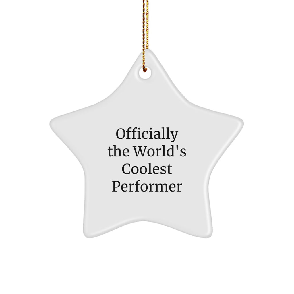 - Get ready to shine with our funny performer star ornament, featuring a unique and inspirational quote that says, ''Officially The World's Coolest Performer''. Made with sturdy MDF and high-gloss plastic, this star ornament is lightweight, resistant to breaking, and perfect for households with children or pets.
