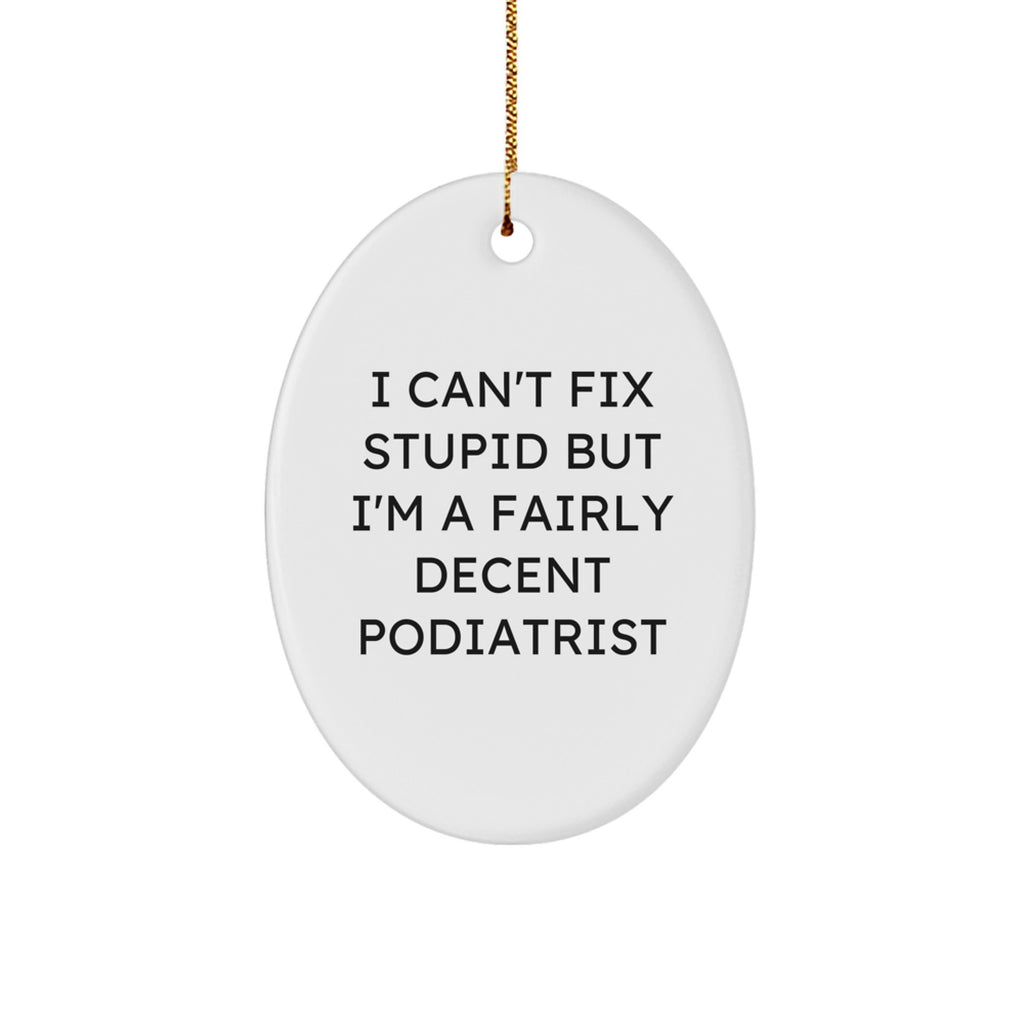 Funny Podiatrist Gifts for Friends - Oval Ornament with I Can't Fix Stupid But I'm A Fairly Decent Podiatrist Quote, Gifts from Family to Podiatrist