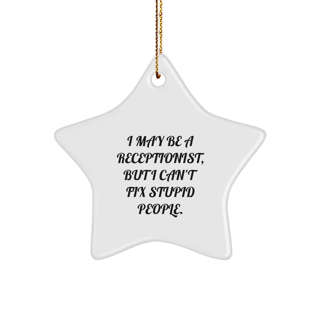 - Our star-shaped ornament is designed specifically for Receptionists who know that 'I May Be A Receptionist, But I Can't Fix Stupid People.' It's a great way to add some humor and personality to your home or office decor, making it a ideal gift for friends, family, or coworkers who appreciate the hard work and dedication of Receptionists.