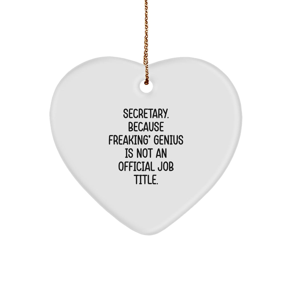 Funny Secretary Gifts, 'Secretary. Because Freaking' genius Is Not An Official Job Title.' Heart Ornament, White, 2.75'' Tall, Christmas Unique Gifts from Friends, Coworkers, Family