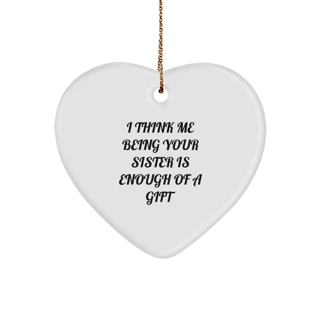 - Show your sister how much you care with this funny 'I Think Me Being Your Sister Is Enough Of A Gift' Heart Ornament. Perfect for sisters of all ages, this heart-shaped ornament is a unique and thoughtful gift from family members.
