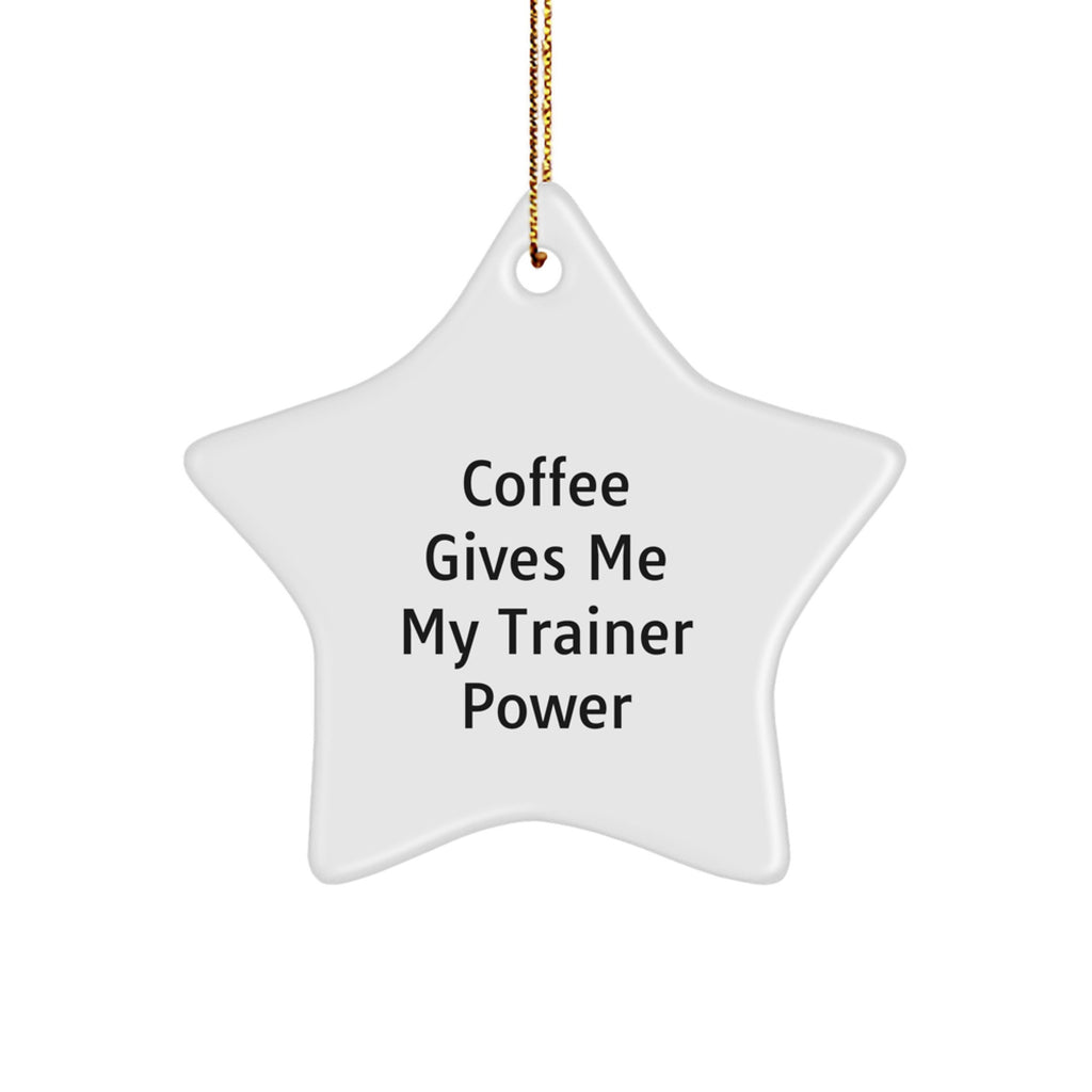 - Get your 'Coffee Gives Me My Trainer Power' Star Ornament today and make this holiday season one to remember! Hang it on your tree or give it as a gift to someone who loves training and coffee