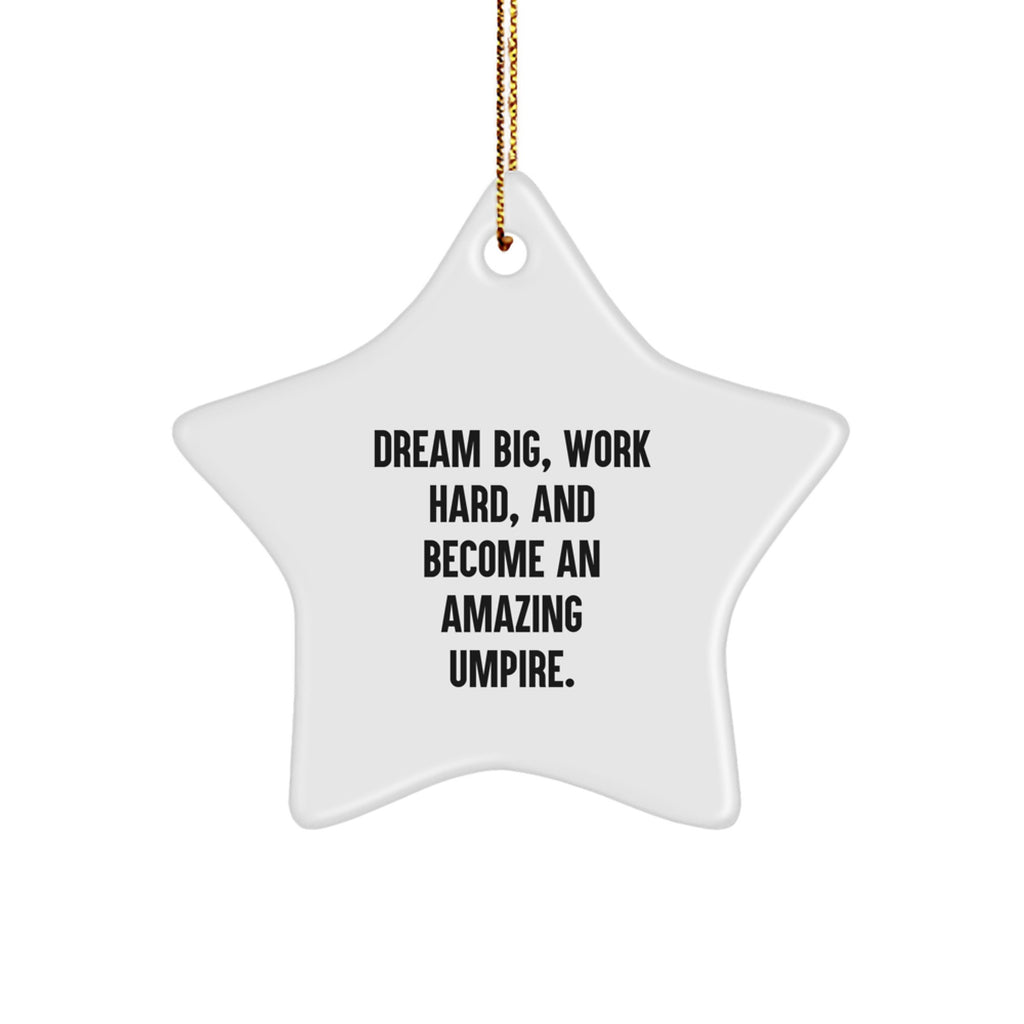 - This Funny Umpire Star Ornament is a great way to decorate your home and show off your personality. The quote 'Dream Big, Work Hard, And Become An Amazing Umpire' is sure to inspire anyone who sees it. The sender of this gift will surely be proud to give it to their loved ones, and the recipient will appreciate the thought and effort put into choosing such a unique gift.