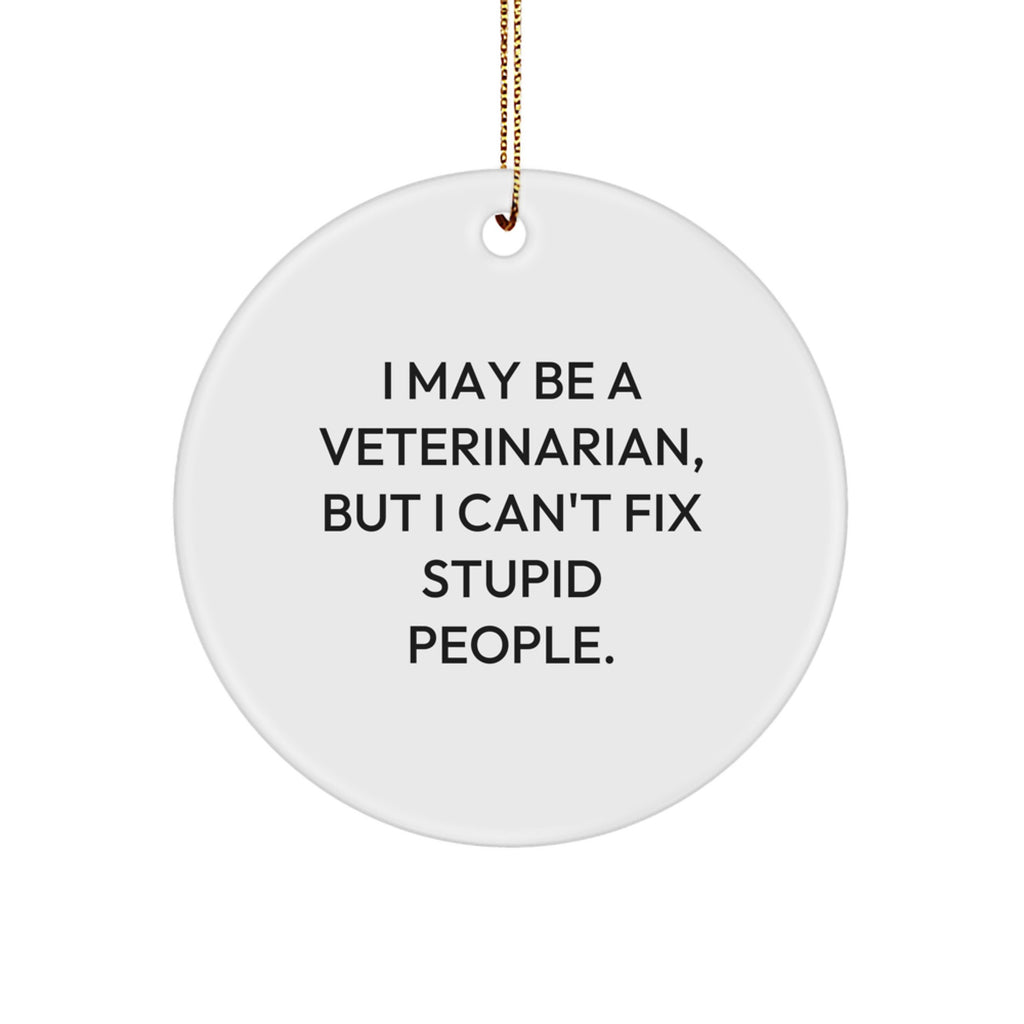 - This 'I May Be A Veterinarian, But I Can't Fix Stupid People.' Circle Ornament is a unique and humorous gift for any veterinarian or animal lover. The vibrant print and sturdy construction ensure that it will withstand the test of time, making it a great addition to your holiday decor. Whether you're decorating your tree or giving it as a gift, this ornament is sure to bring a smile to someone's face.