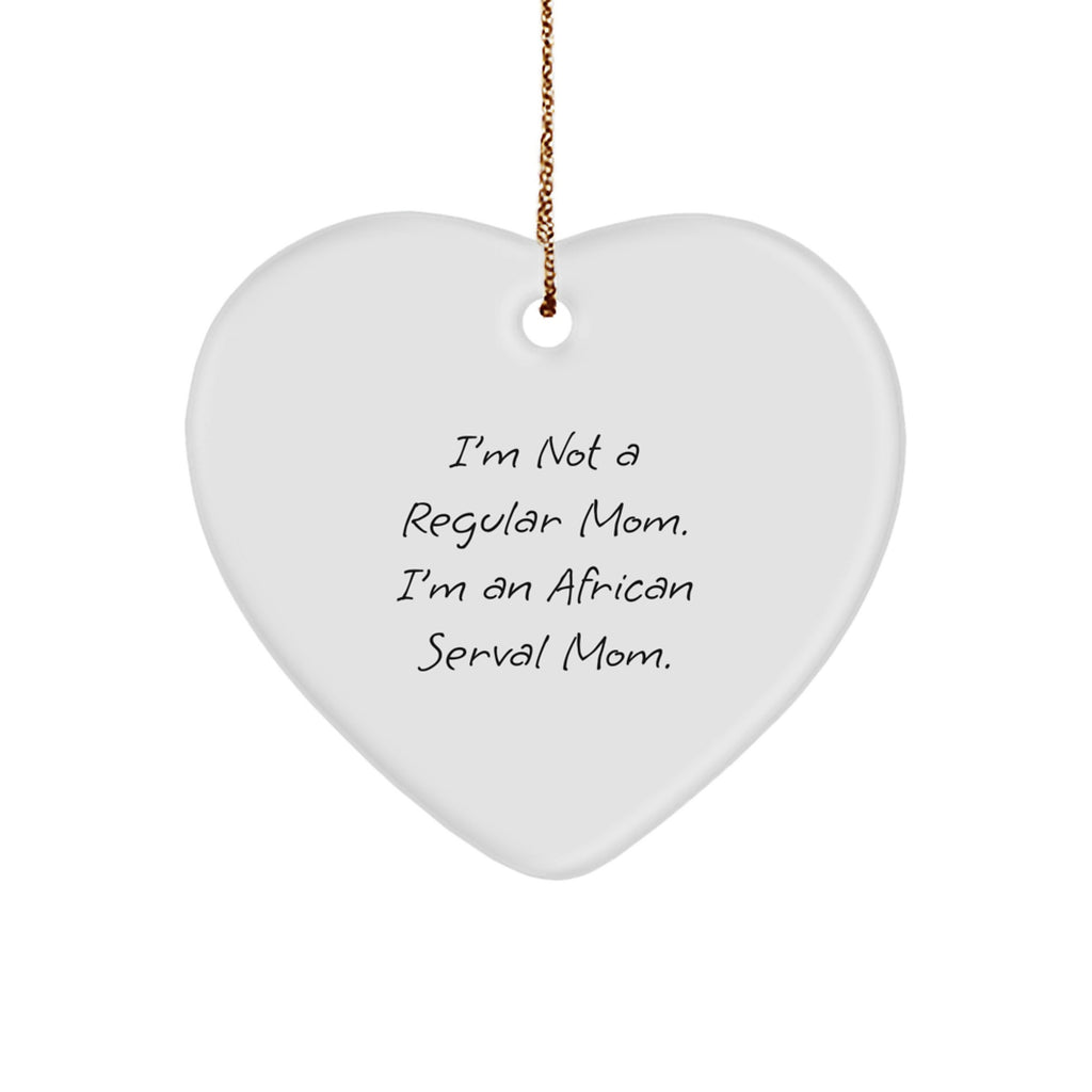 African Serval Cat enthusiasts, rejoice! This heartwarming 'I'm Not A Regular Mom. I'm An African Serval Mom.' quote-inspired Heart Ornament is the purrfect way to show off your love for these majestic creatures. With its vibrant colors and sturdy MDF construction, this ornament is a thoughtful gift for any African Serval Cat lover in your life, whether it's a friend, family member, or coworker.