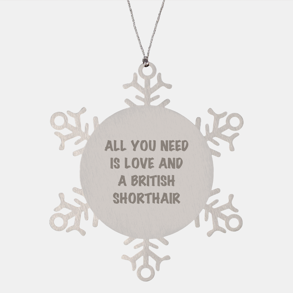 - Celebrate the holiday season with your beloved British Shorthair Cat with this charming snowflake ornament, featuring the heartwarming quote, 'All You Need Is Love And A British Shorthair.'