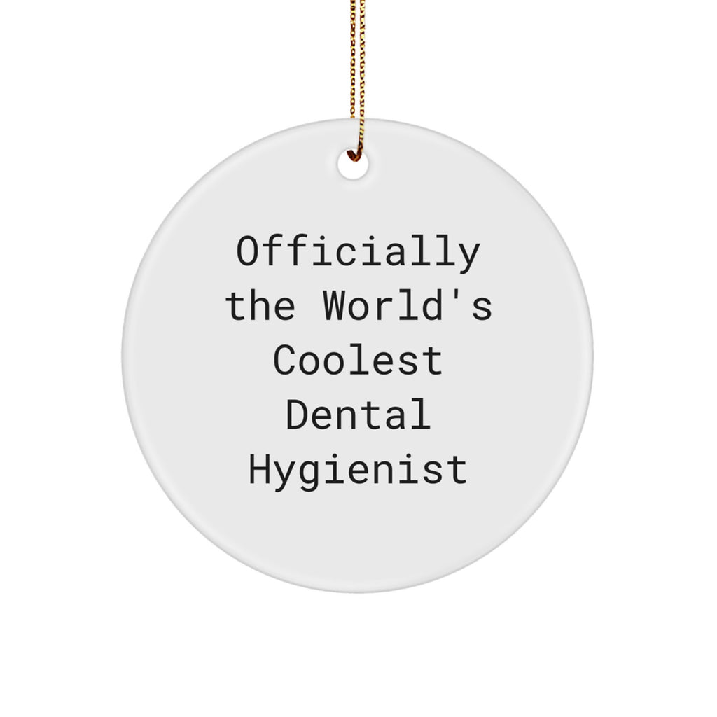 Funny Dental Hygienist Gifts from Friends for Christmas Circle Ornament, 'Officially The World's Coolest Dental Hygienist'