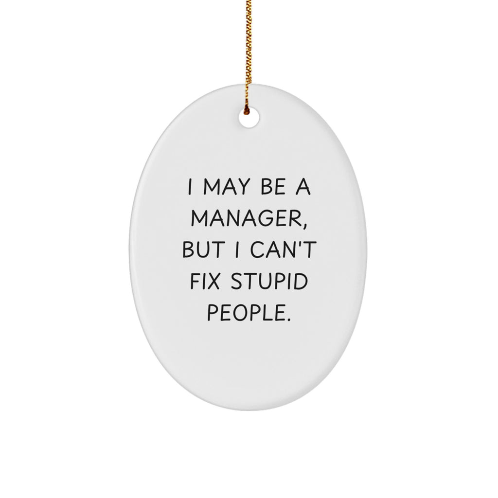 Funny Manager Gifts from Friends and Family - I May Be A Manager, But I Can't Fix Stupid People. Oval Ornament for Manager's Office, Desk or Christmas Decoration