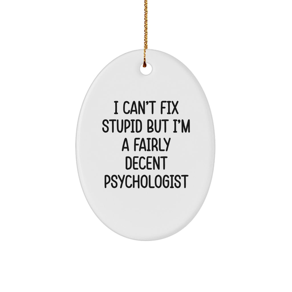 Funny Psychologist Gifts for Men - I Can't Fix Stupid But I'm A Fairly Decent Psychologist Oval Ornament, Christmas Unique Presents from Friends
