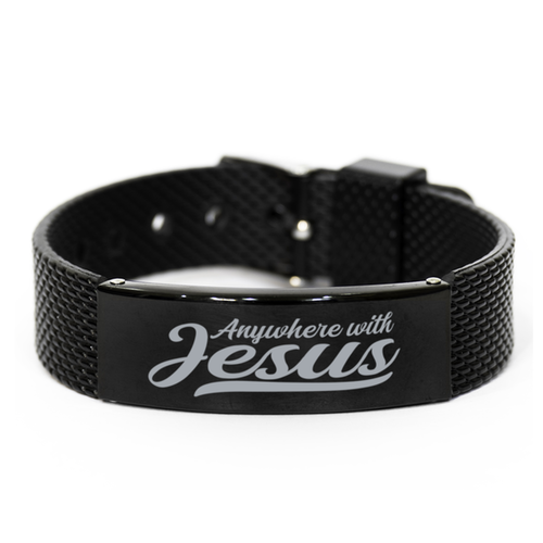 Motivational Christian Black Shark Mesh Bracelet, Anywhere with Jesus., Inspirational Christmas , Family, Anniversary Gifts For Christian Men, Women, Girls & Boys