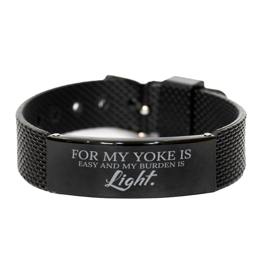Motivational Christian Black Shark Mesh Bracelet, For my yoke is easy and my burden is light., Inspirational Christmas , Family, Anniversary Gifts For Christian Men, Women, Girls & Boys