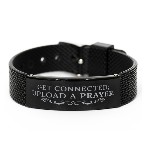 Motivational Christian Black Shark Mesh Bracelet, Get connected; upload a prayer., Inspirational Christmas , Family, Anniversary Gifts For Christian Men, Women, Girls & Boys