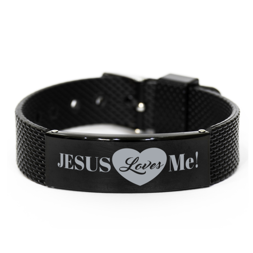 Motivational Christian Black Shark Mesh Bracelet, Jesus Loves Me!, Inspirational Christmas , Family, Anniversary Gifts For Christian Men, Women, Girls & Boys