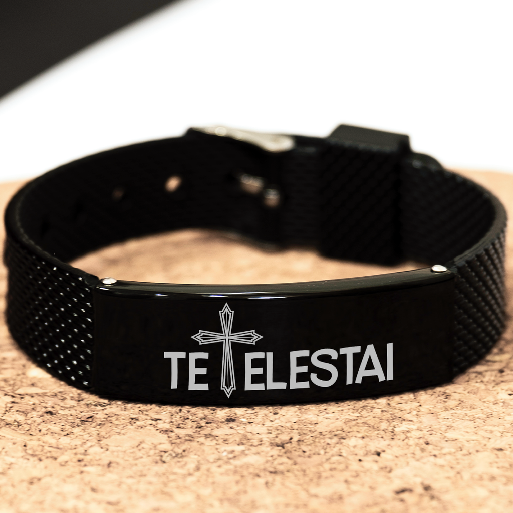 Motivational Christian Black Shark Mesh Bracelet, Tetelestai Inspirational Christmas, Family Gifts for Christian Men, Women, Girls & Boys