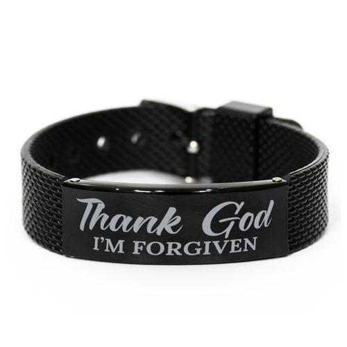 Motivational Christian Black Shark Mesh Bracelet, Thank God I