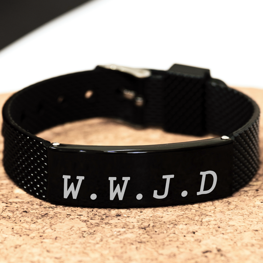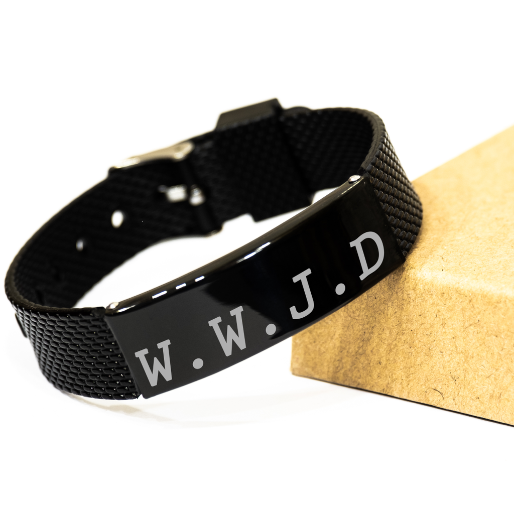 Motivational Christian Black Shark Mesh Bracelet, W.W.J.D, Inspirational Christmas, Family Gifts for Christian Men, Women, Girls & Boys