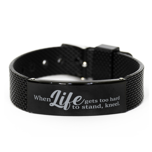 Motivational Christian Black Shark Mesh Bracelet, When life gets too hard to stand, kneel., Inspirational Christmas , Family, Anniversary Gifts For Christian Men, Women, Girls & Boys