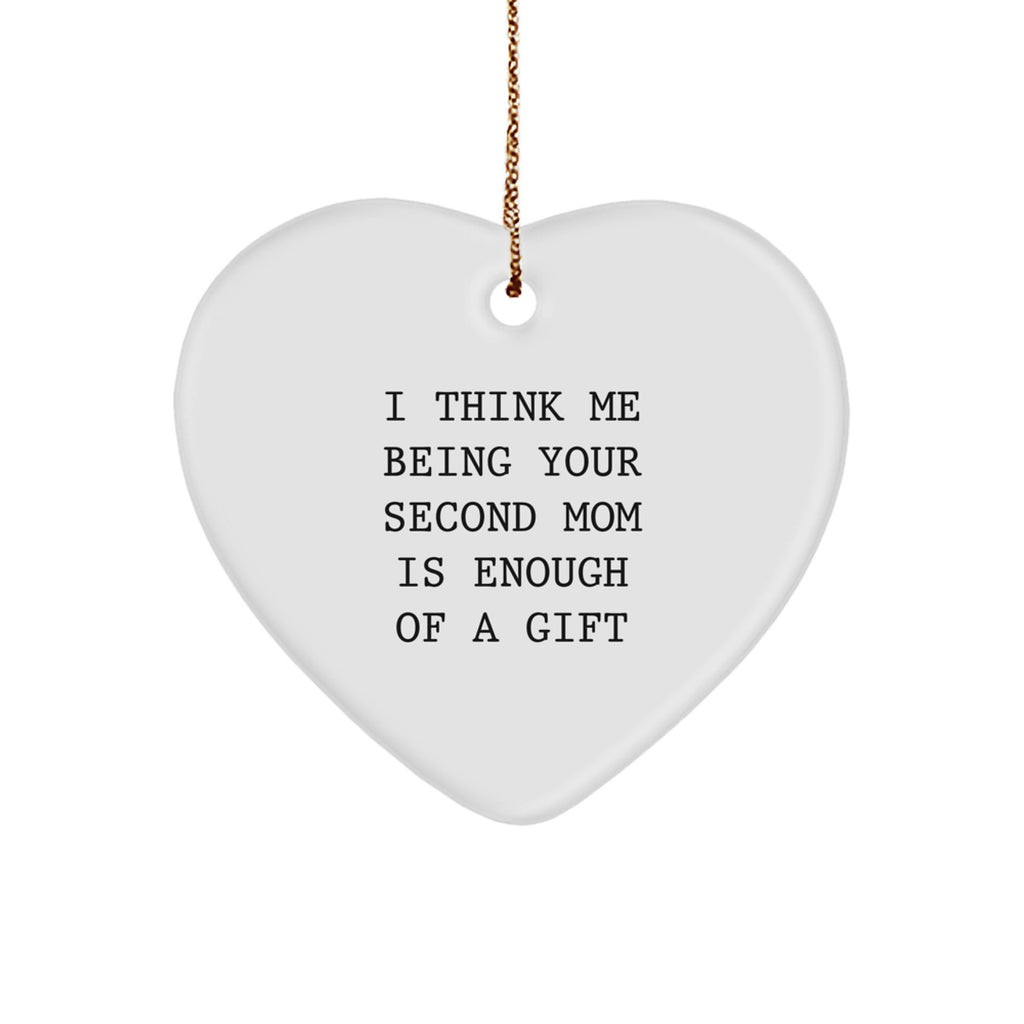 Second Mom Gifts from Men to Heart Ornament with Funny Quote Gifts for Second Mom, Christmas Unique Presents