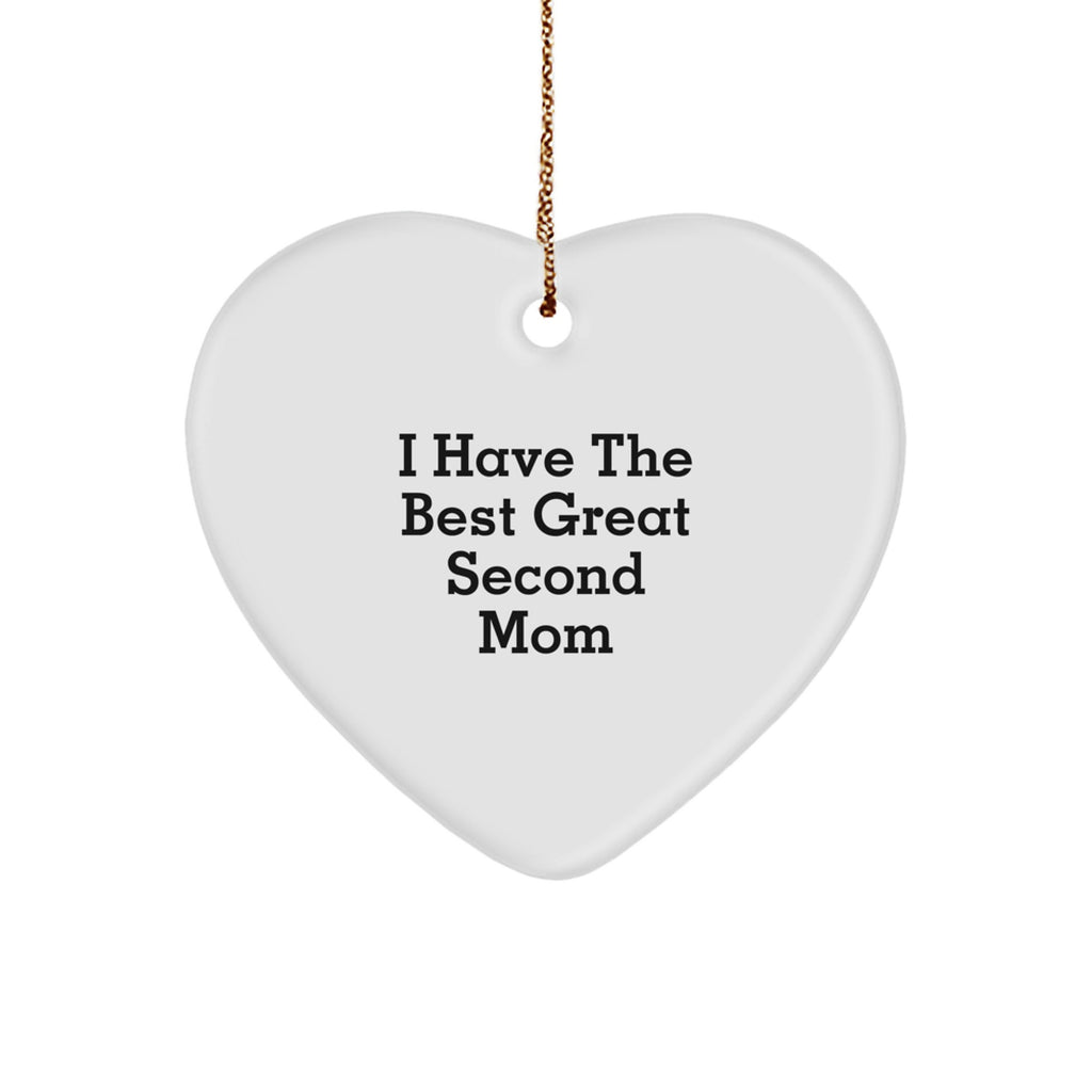 Second Mom Gifts Funny Heart Ornament, 'I Have The Best Great Second Mom', White Heart Shaped, Gifts from Family, for Second Mom, Christmas Unique Gifts