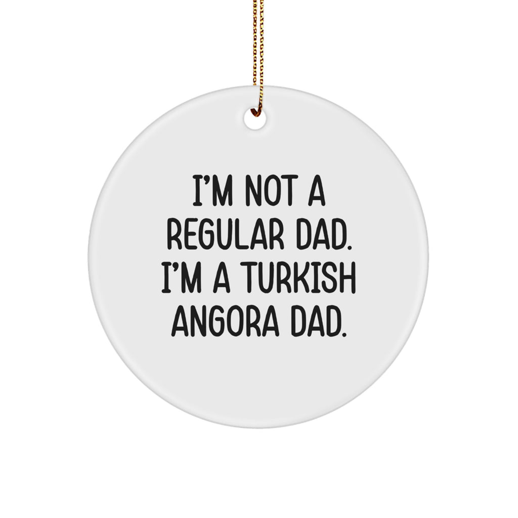 - Bring the joy of Turkish Angora Cats into your home with this adorable Circle Ornament, featuring the quote 'I'm Not A Regular Dad. I'm A Turkish Angora Dad.' The high-quality production process ensures bright, vivid colors and a smooth finish, making it a great addition to any room's decor.