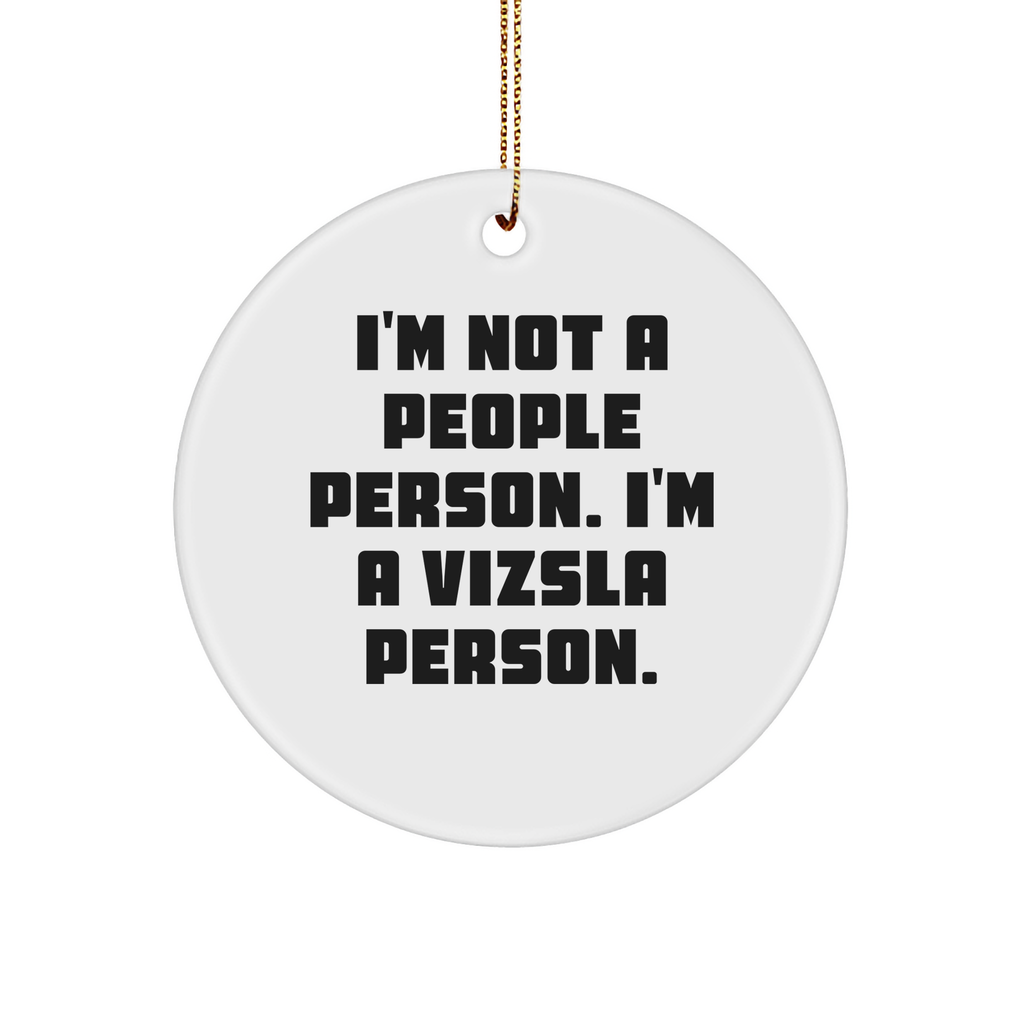- Show your love for Vizsla Dogs with our unique Circle Ornament featuring the hilarious quote, 'I'm Not A People Person. I'm A Vizsla Person.', perfect for the special Vizsla Dog lover in your life.